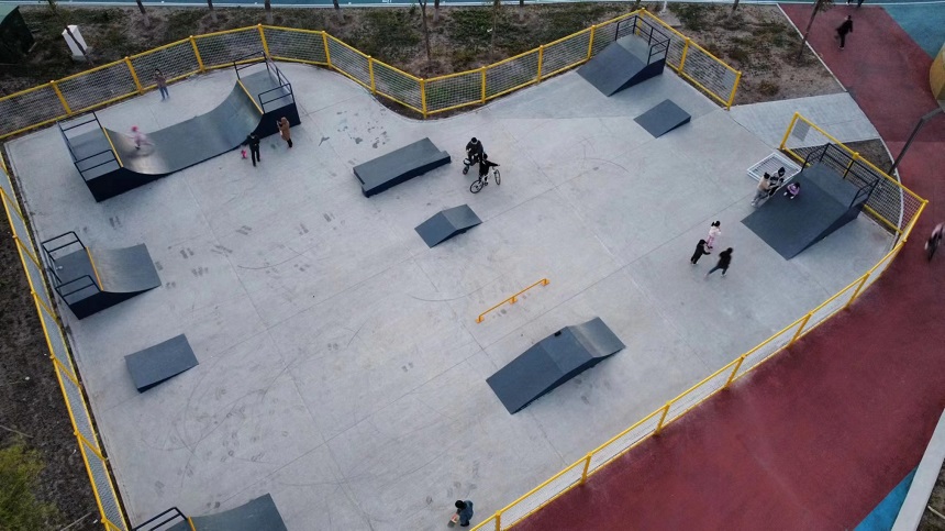 廣闊的滑板場(chǎng)地設(shè)計(jì)別具匠心,800多平面的街式場(chǎng)地區(qū)域、U型槽、小弧坡、小斜坡、雙斜坡、大小出發(fā)臺(tái)、大小拋出臺(tái)、跳箱、盒子、跳桿、坡跳臺(tái)各種都有。彎曲的曲線道、陡峭的坡道和各種令人眼花繚亂的障礙設(shè)施,處處挑戰(zhàn)滑手們的技藝和勇氣。無(wú)論是新手還是經(jīng)驗(yàn)豐富的滑板高手,都能在這里找到適合自己的挑戰(zhàn),一次又一次突破自我,感受成功的喜悅。
